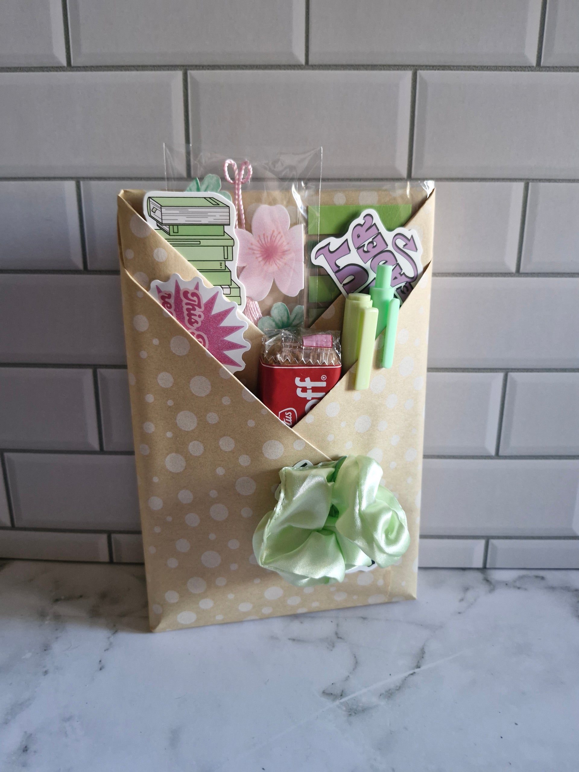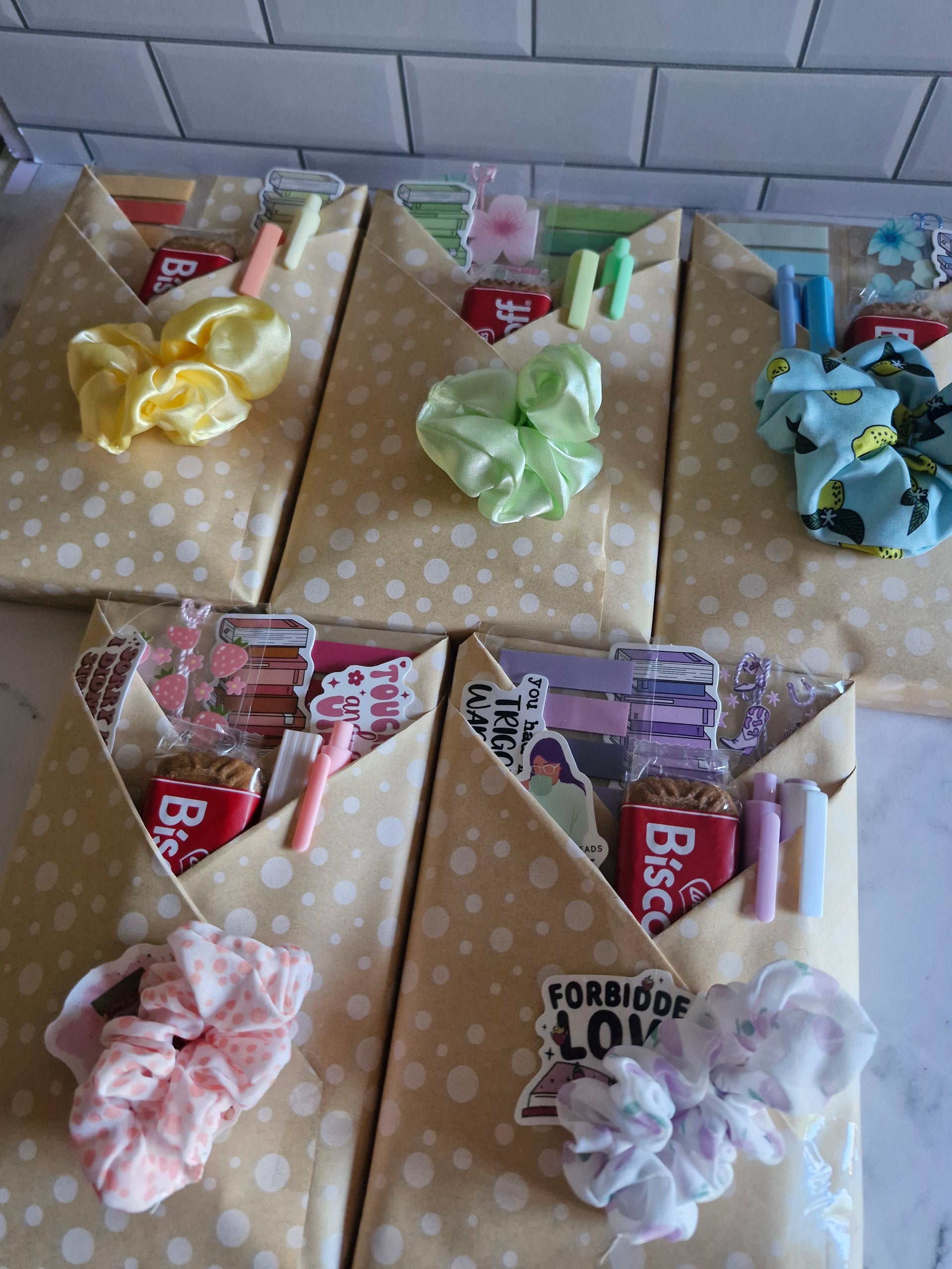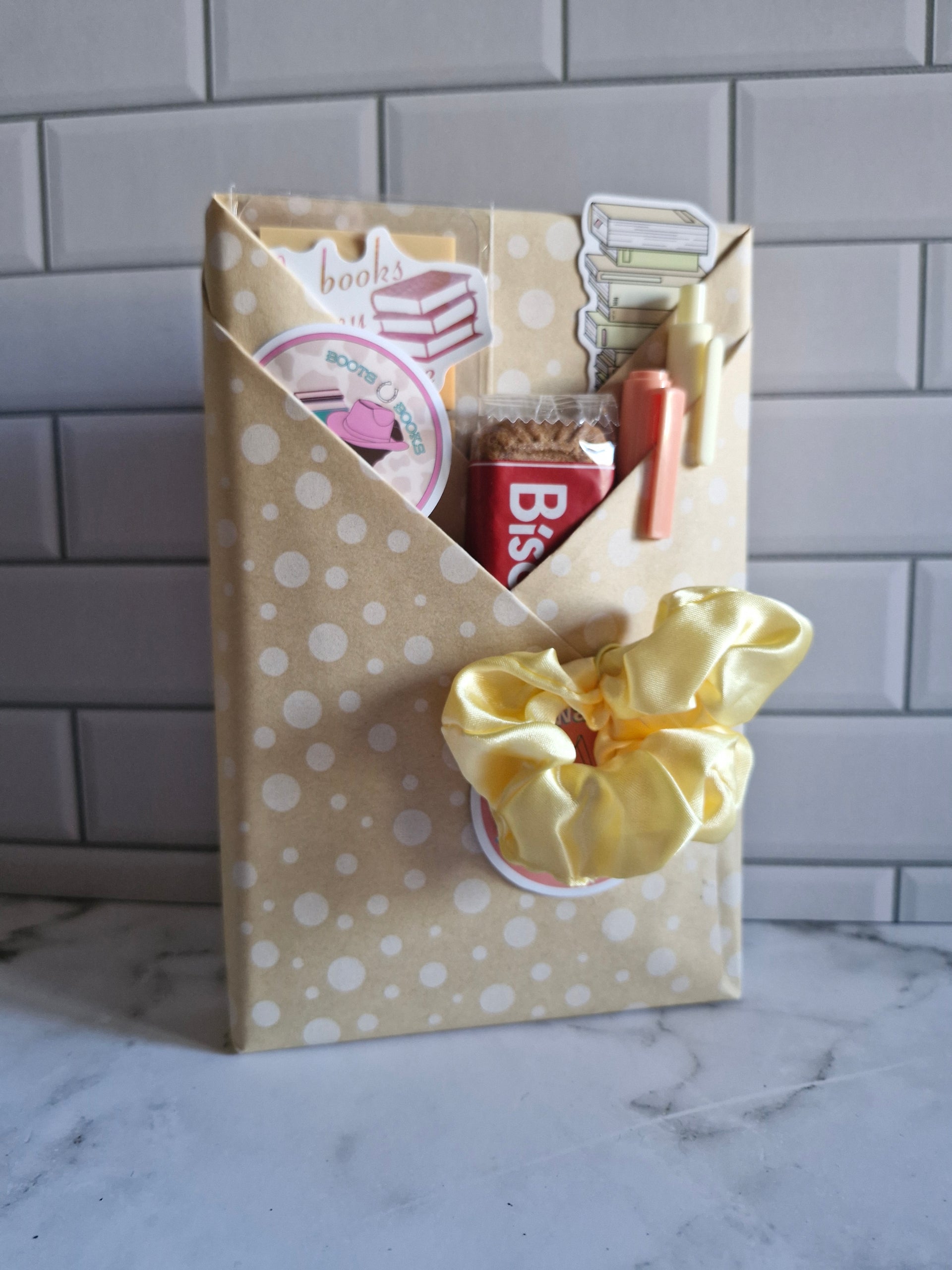 💖 Deluxe Date – includes a full pack of cute and practical bookish items; - acrylic bookmark, book stack bookmark, annotation tabs, tea, biscoff, pen, highlighter, stickers, paperclip and scrunchie!